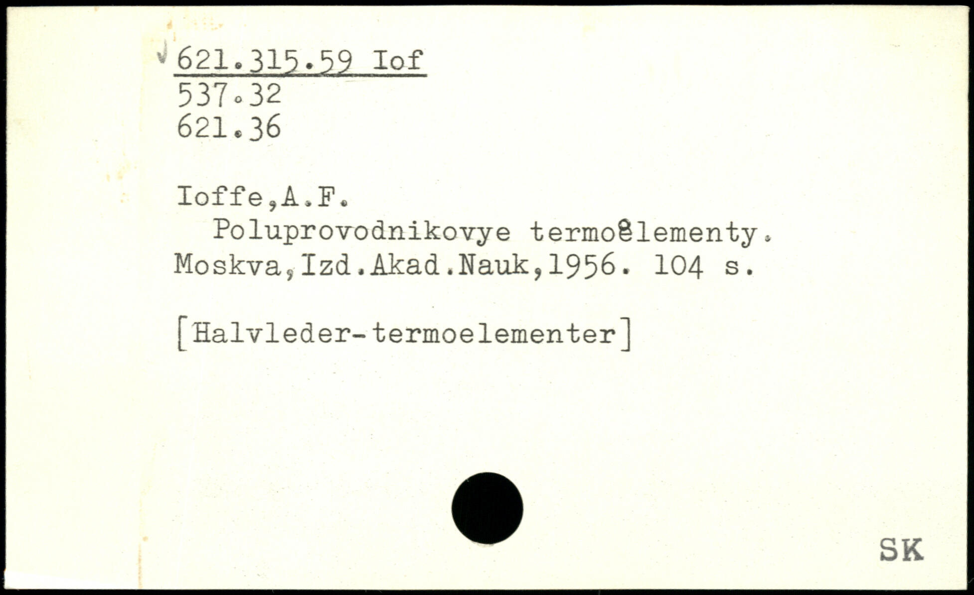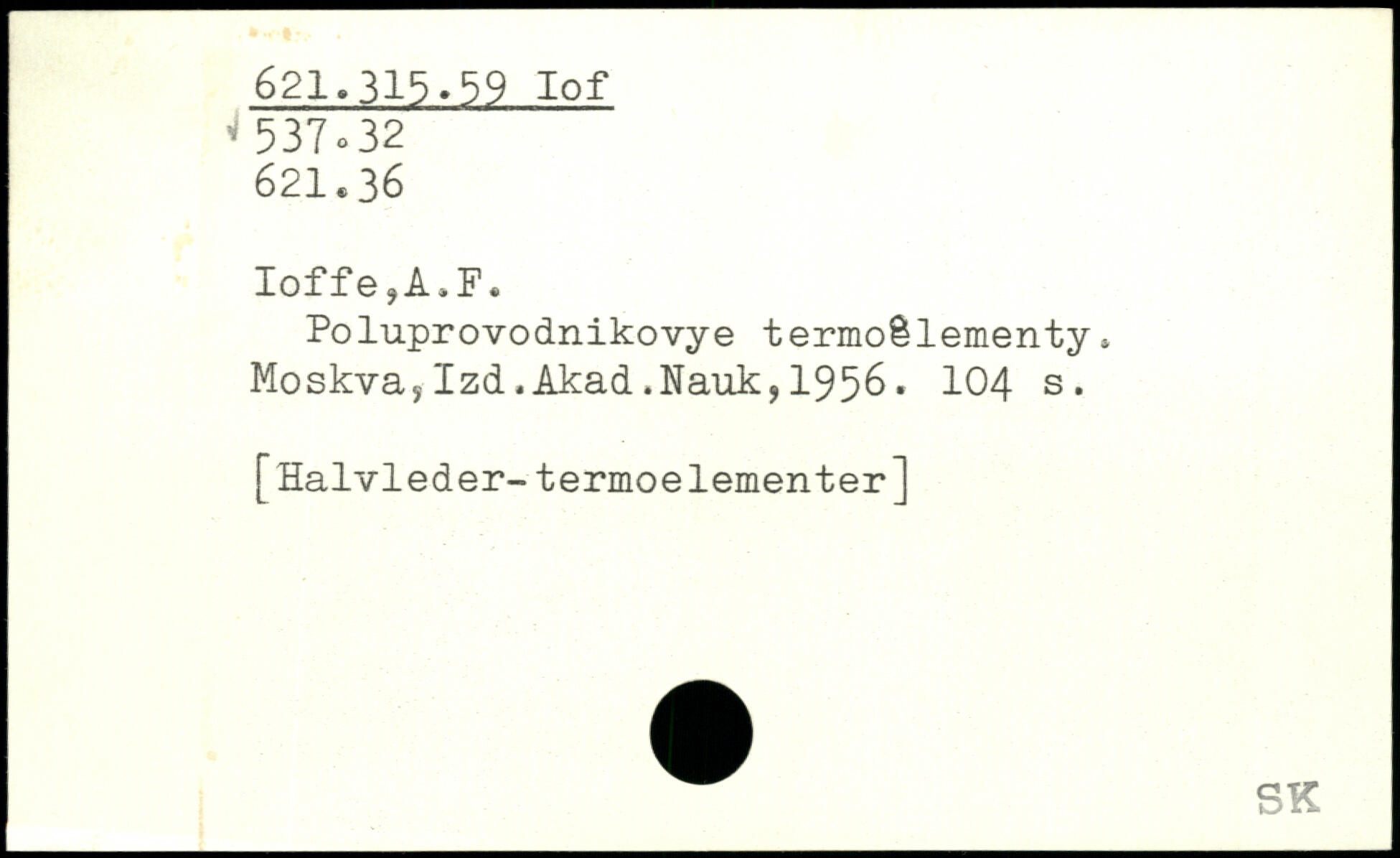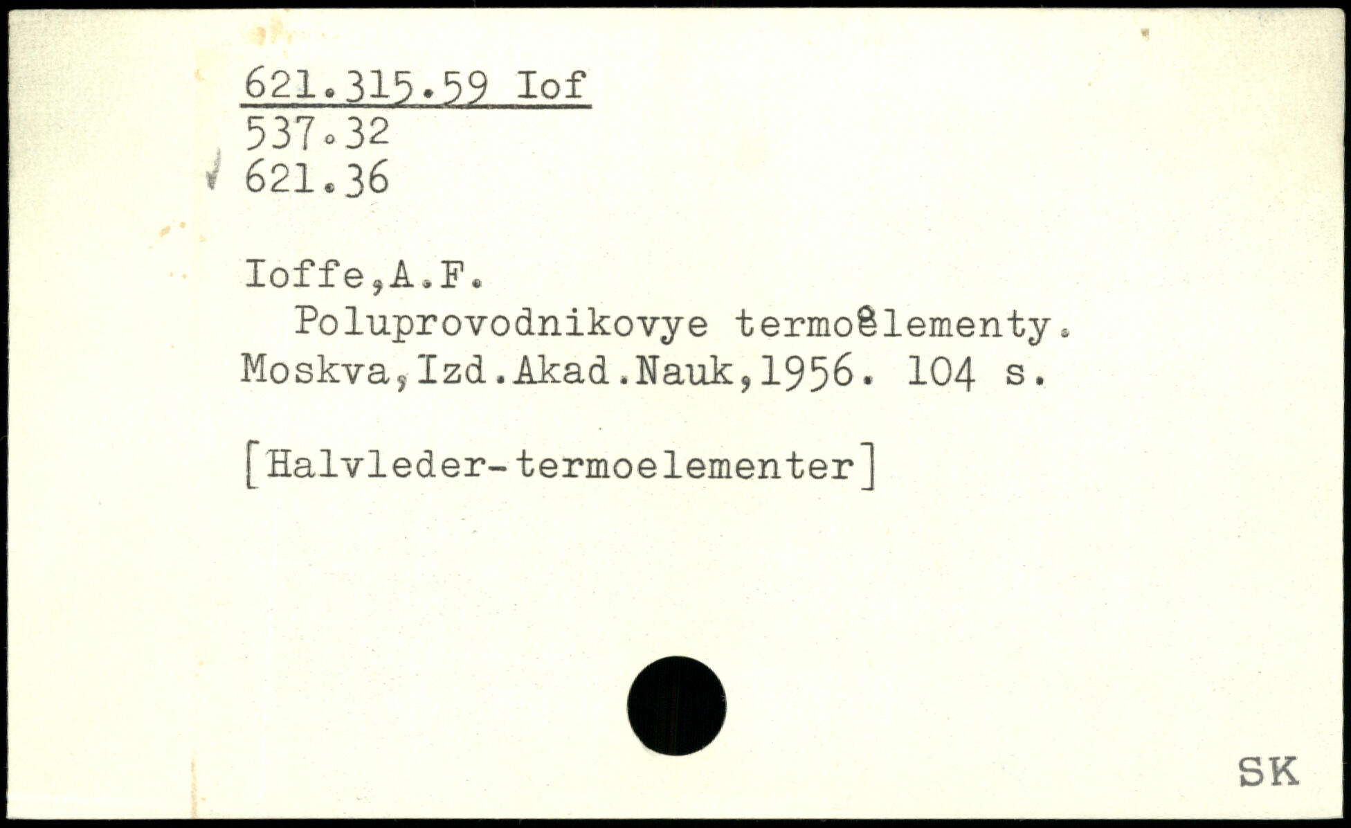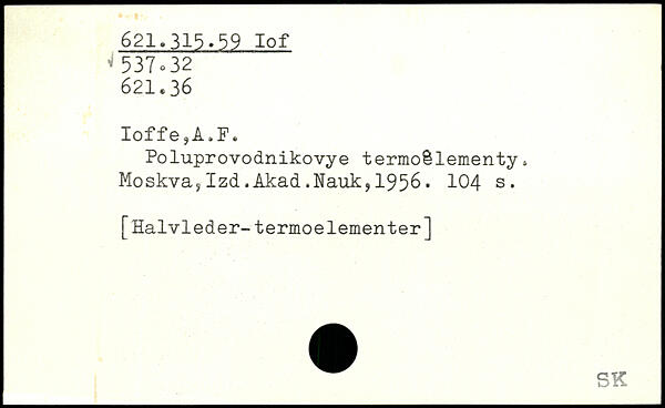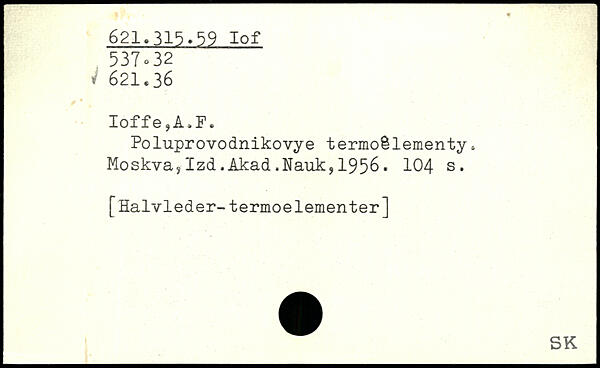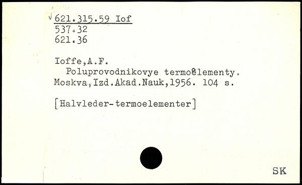 Poluprovodnikovye termoélementy, Moskva,Izd.Åkad.Nauk,1956.