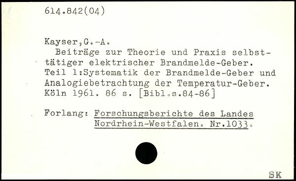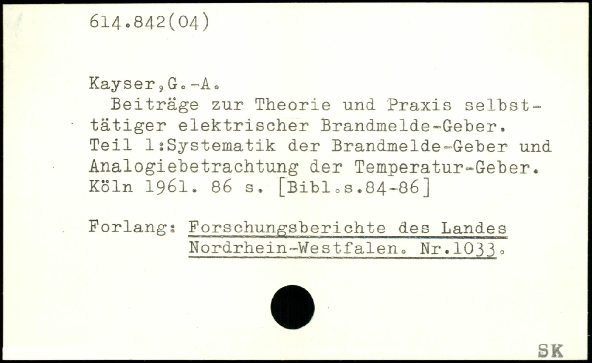Beiträge zur Theorie und Praxis selbsttätiger elektrischer Brandmelde-Geber. Teil l:Systematik der Brandmelde-Geber und Analogiebetrachtung der Temperatur-Geber.