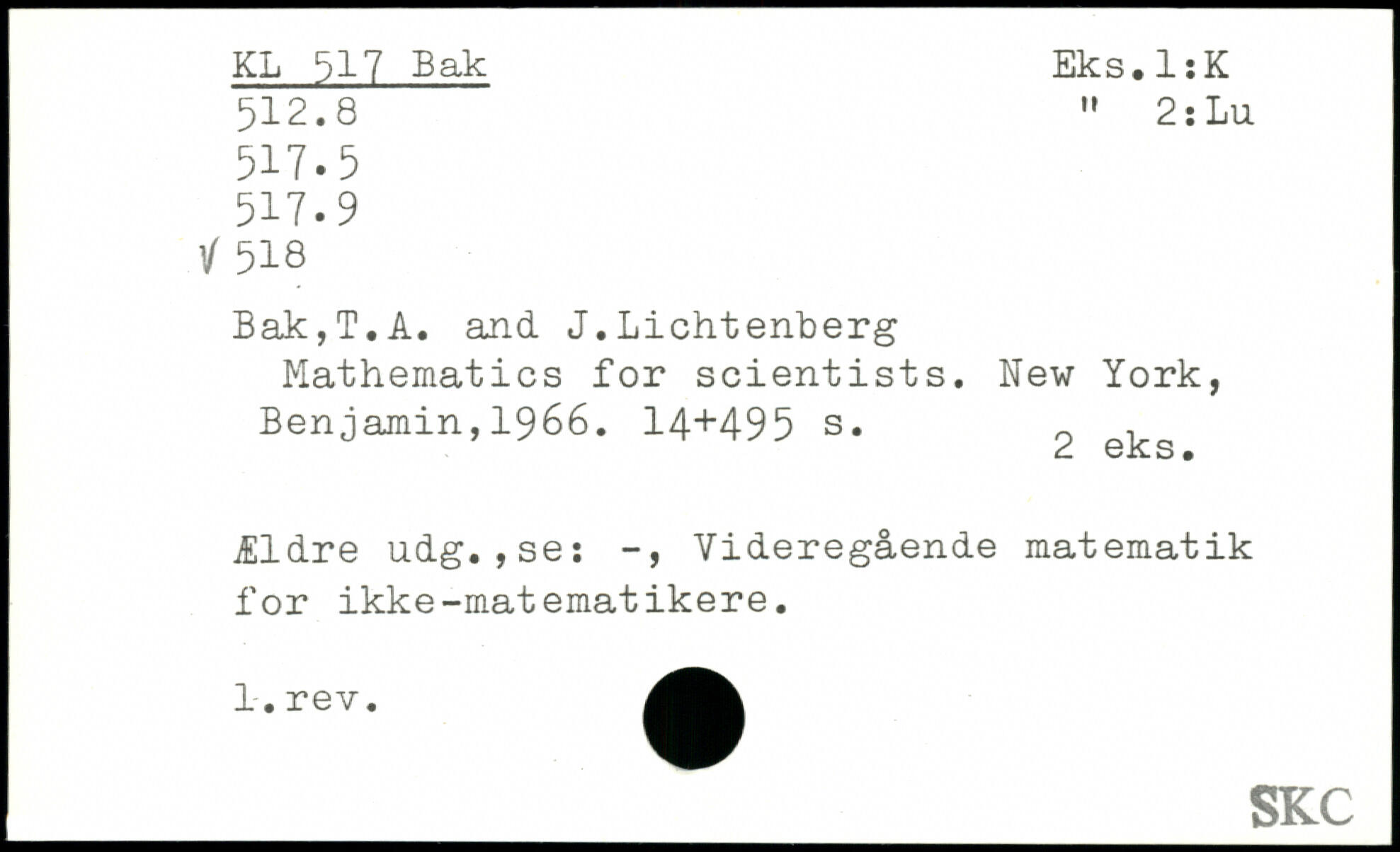 UDK: 517 Bak, 512.8, 21, 517.5, 517.9, 518