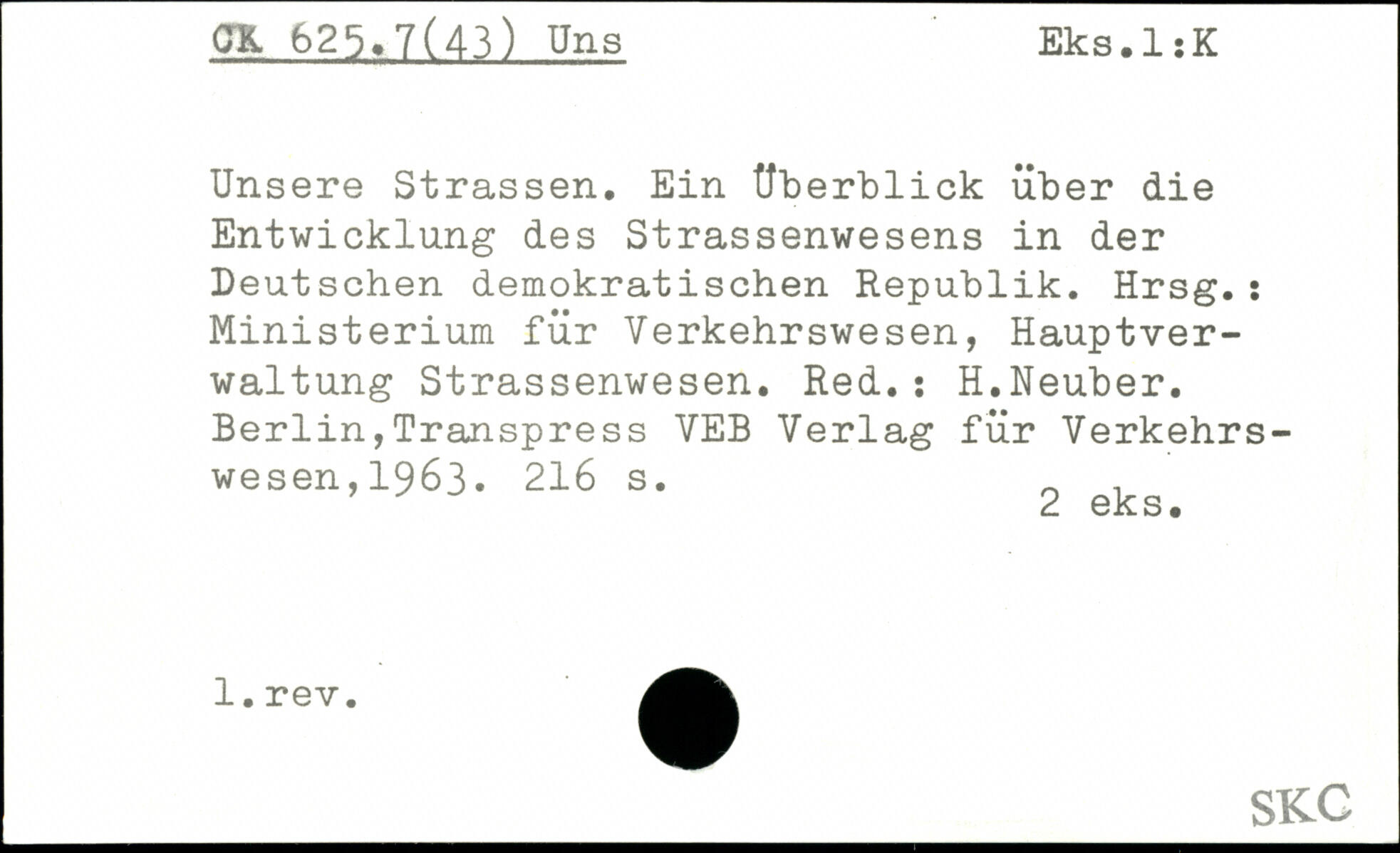 Unsere Strassen. Ein Überblick über die Entwicklung des Strassenwesens in der Deutschen demokratischen Republik. Hrsg.: Ministerium für Verkehrswesen, Hauptverwaltung Strassenwesen. Red.: H.Neuber. Berlin,Transpress VEB Verlag für Verkehrswesen, 1963.