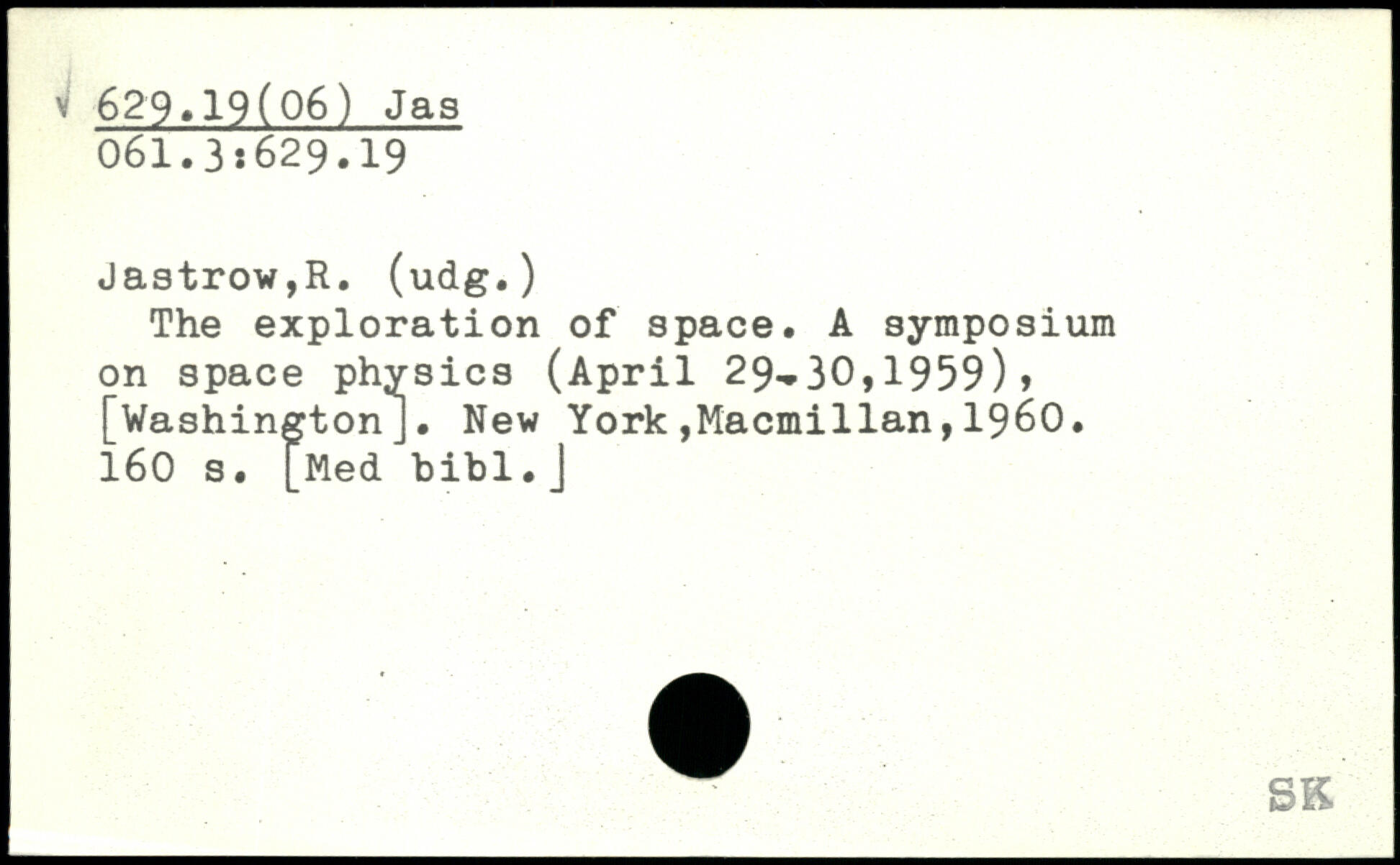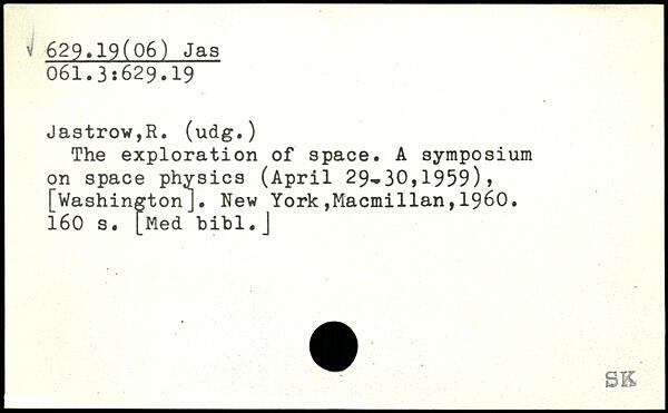 The exploration of space. A symposium on space physics (April 29-30,1959), [WashingtonJ.