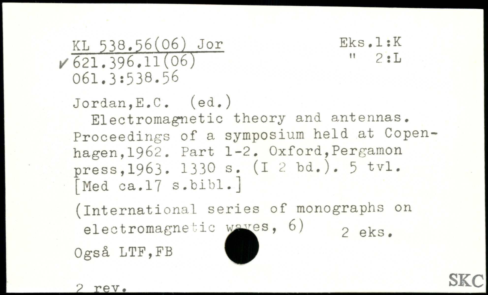 Electromagnetic theory and antennas. 1 Proceedings of a symposium held at Copenhagen, 1962. Part 1-2.