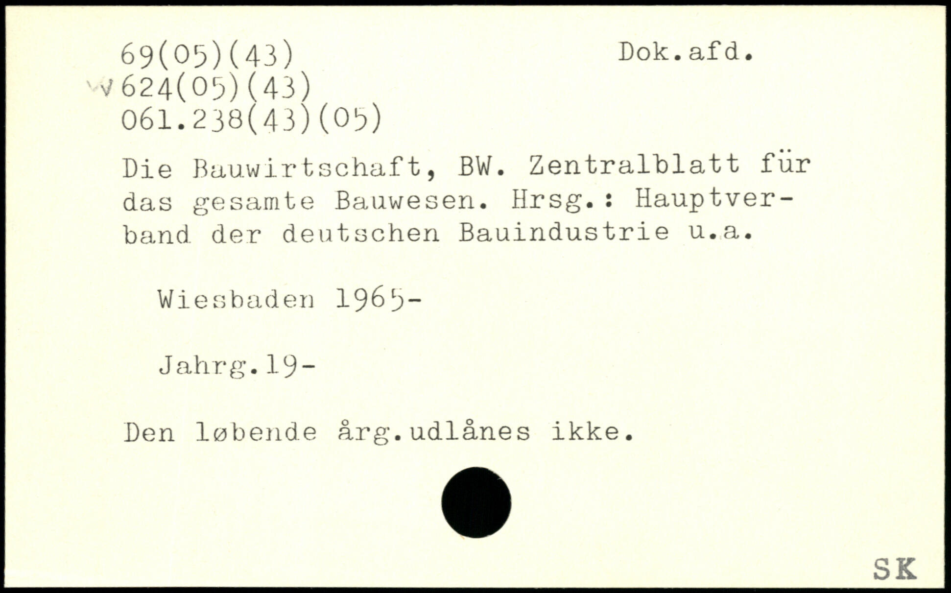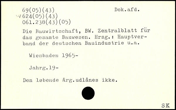 Die Bauwirtschaft, BW. Zentralblatt für das gesamte Bauwesen. Hrsg.: Hauptverband der deutschen Bauindustrie u.a. Wiesbaden 1968- Jahrg.19- Den løbende årg.udlånes ikke.