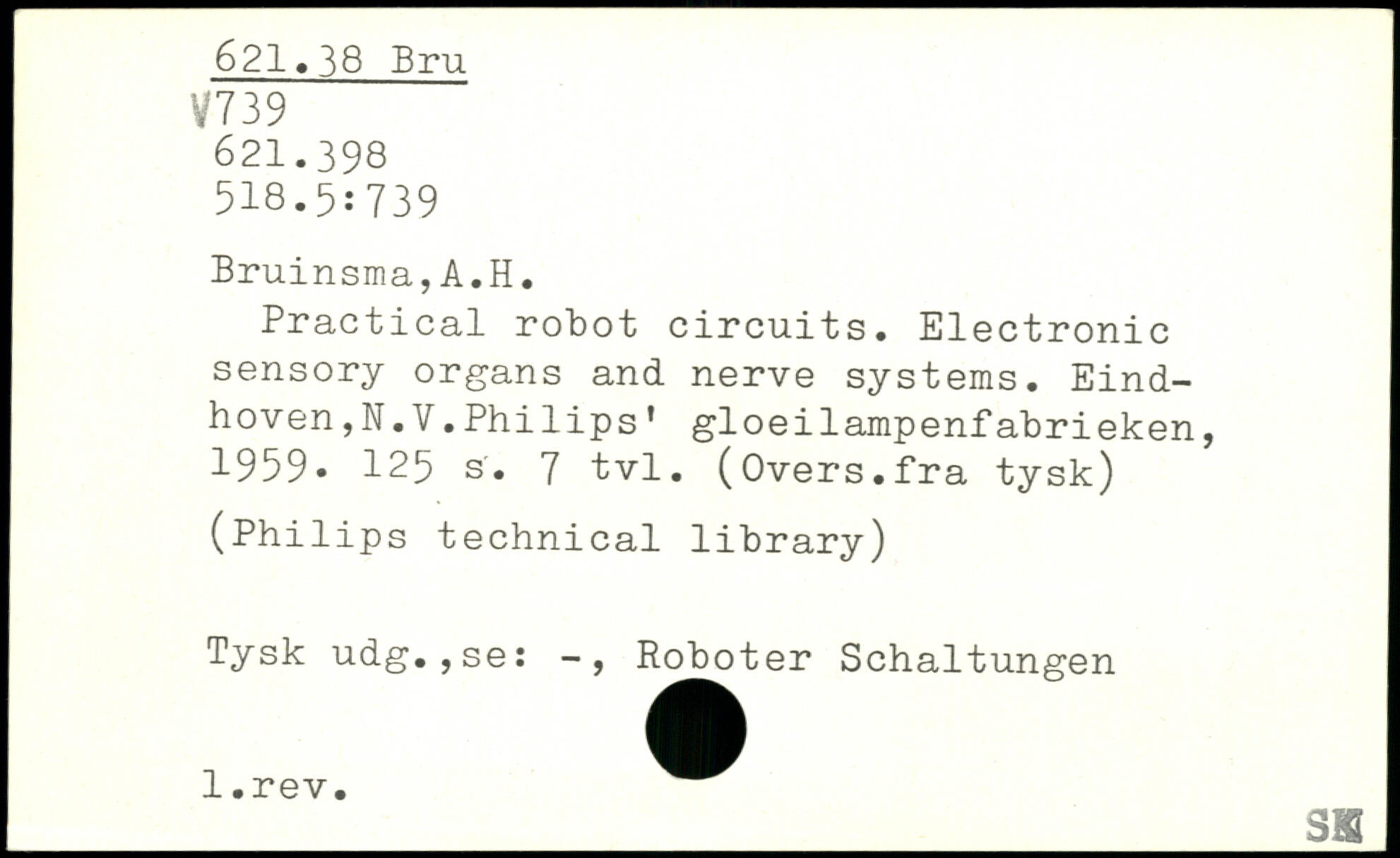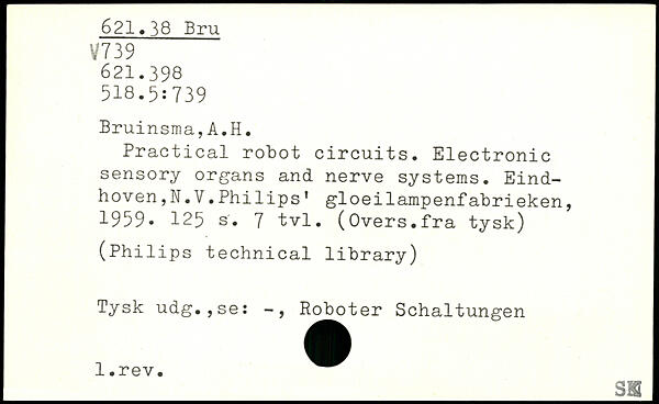 Practical robot circuits. Electronic sensory organs and nerve systems. Eindhoven jN.V.Philips. gloeilampenfabrieken, 1959.