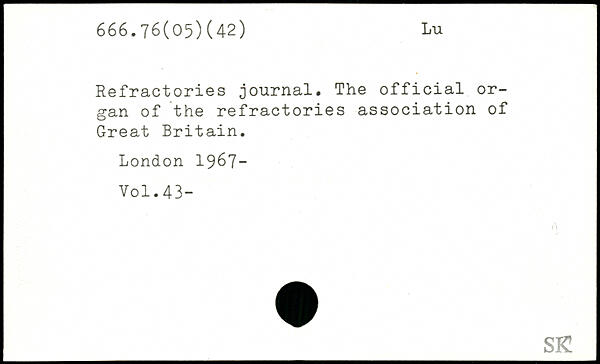 Refractories journal. The official organ of the refractories association of Great Britain.