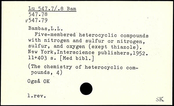 B cimt) cts j L. L. Five-merabered. heterocyclic compounds with nitrogen and sulfur or nitrogen, sulfur, and oxygen (exept thiazole).