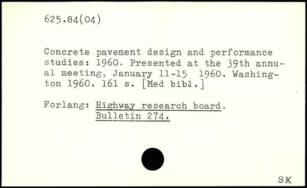Concrete pavement design and performance studies: 1960, Presented at the 39th annual meeting? January 11-15. 1960