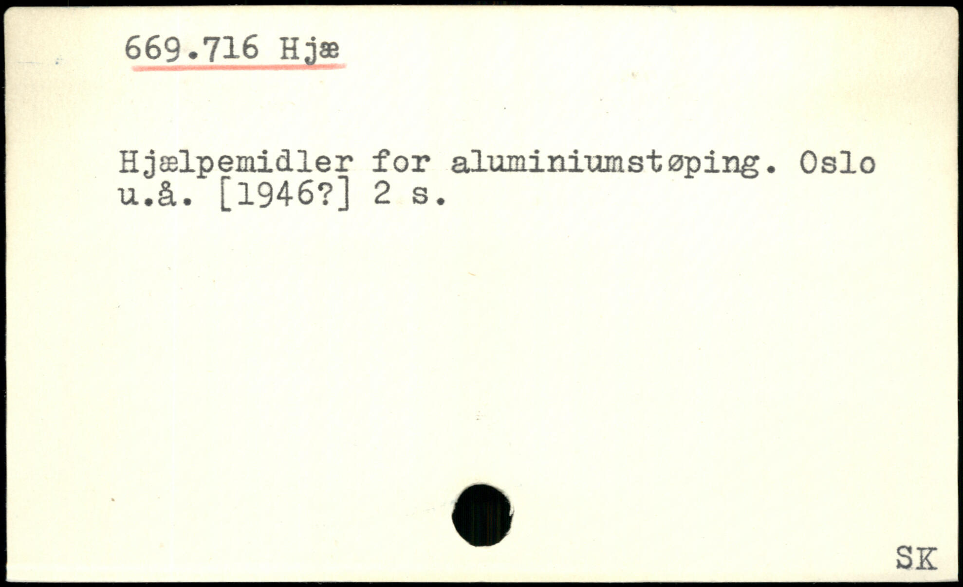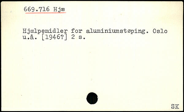 Hjælpemidler for aluminiumstøping. Oslo u.å. [1946?]