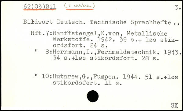 Bildwort Deutsch. Technische Sprachhefte .. Hft.7:Hanffstengel,K.von, Metallische Werkstoffe. 1942.