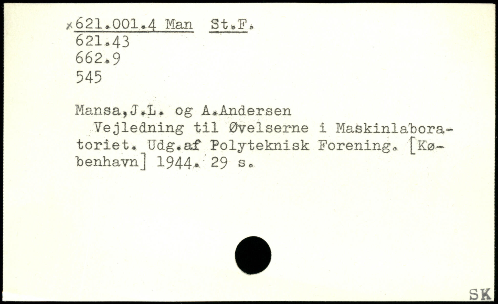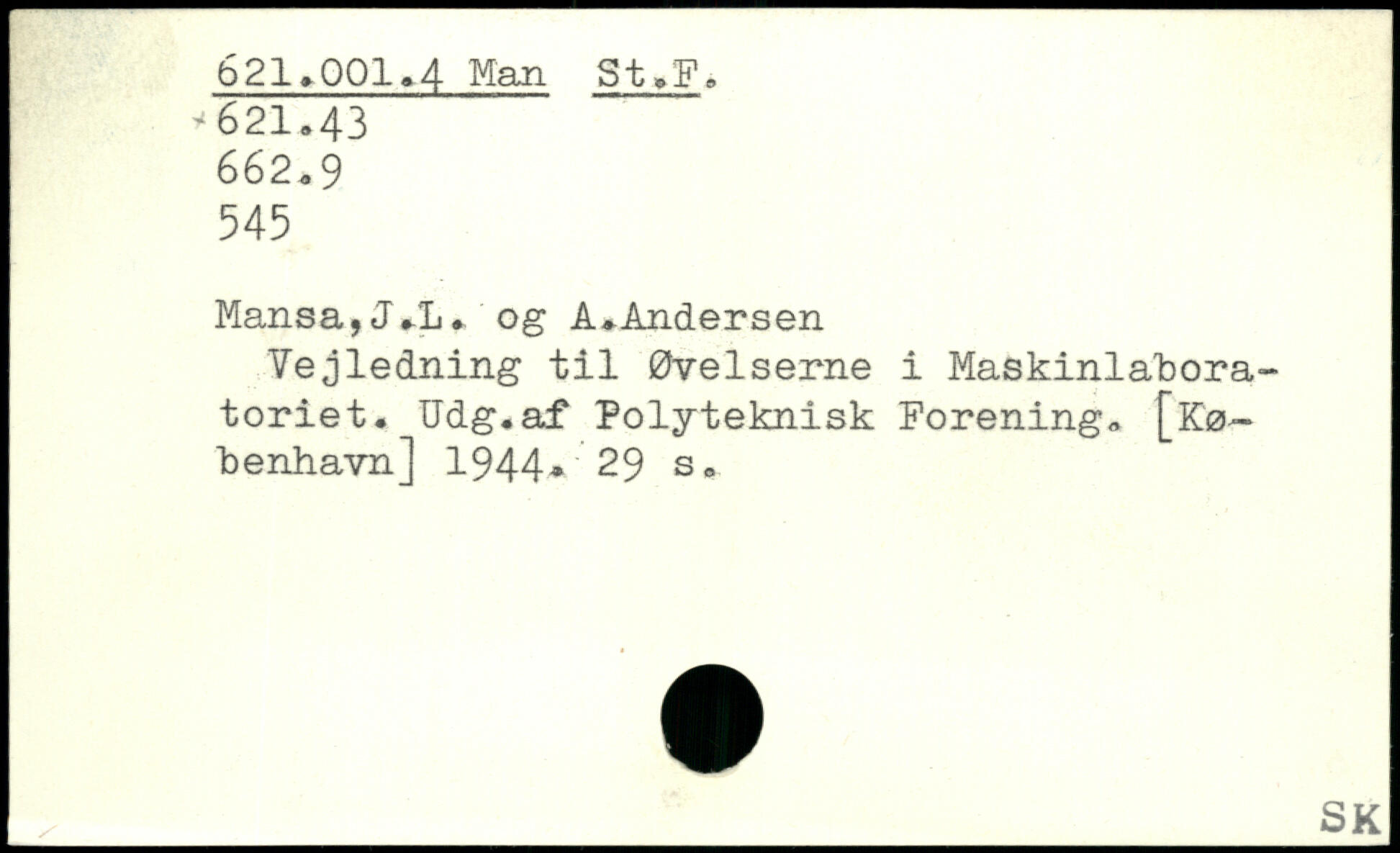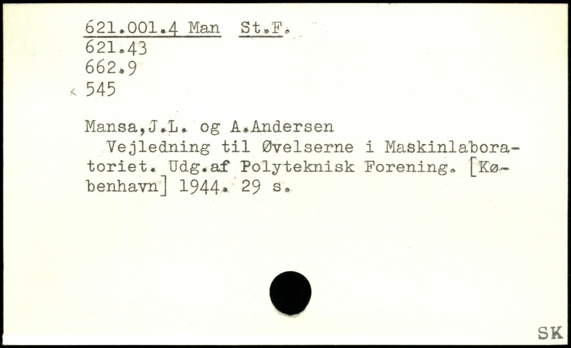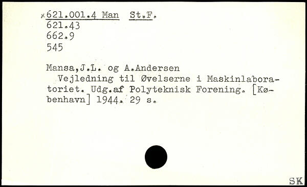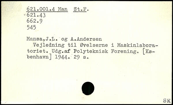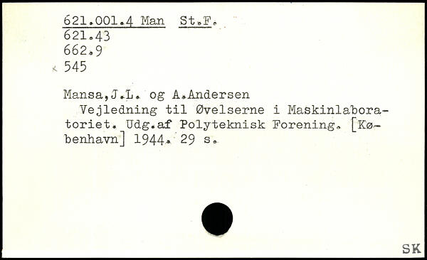 Vejledning til Øvelserne i Maskinlabora-toriet. Udg.af Polyteknisk Forening