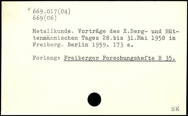 Metallkunde. Vorträge des X0Berg- und Hüttenmännischen Tages 280bis 31.Mai 1958 in Freiberge