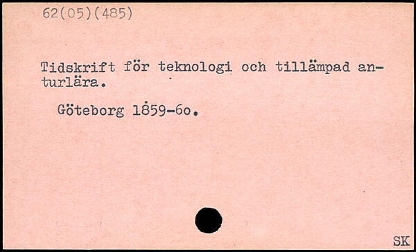 Tidskrift för teknologi och tillämpad an-turlära. Göteborg 1859-6o. SK