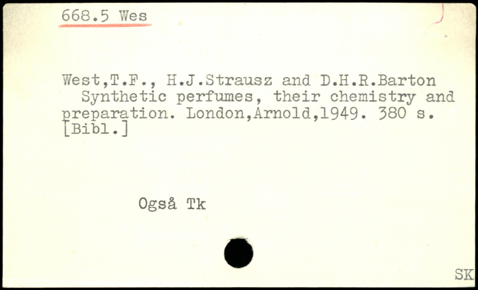 West,T.F., H.J.Strausz and D.H.R.Barton Synthetic perfumes, their chemistry and preparation.