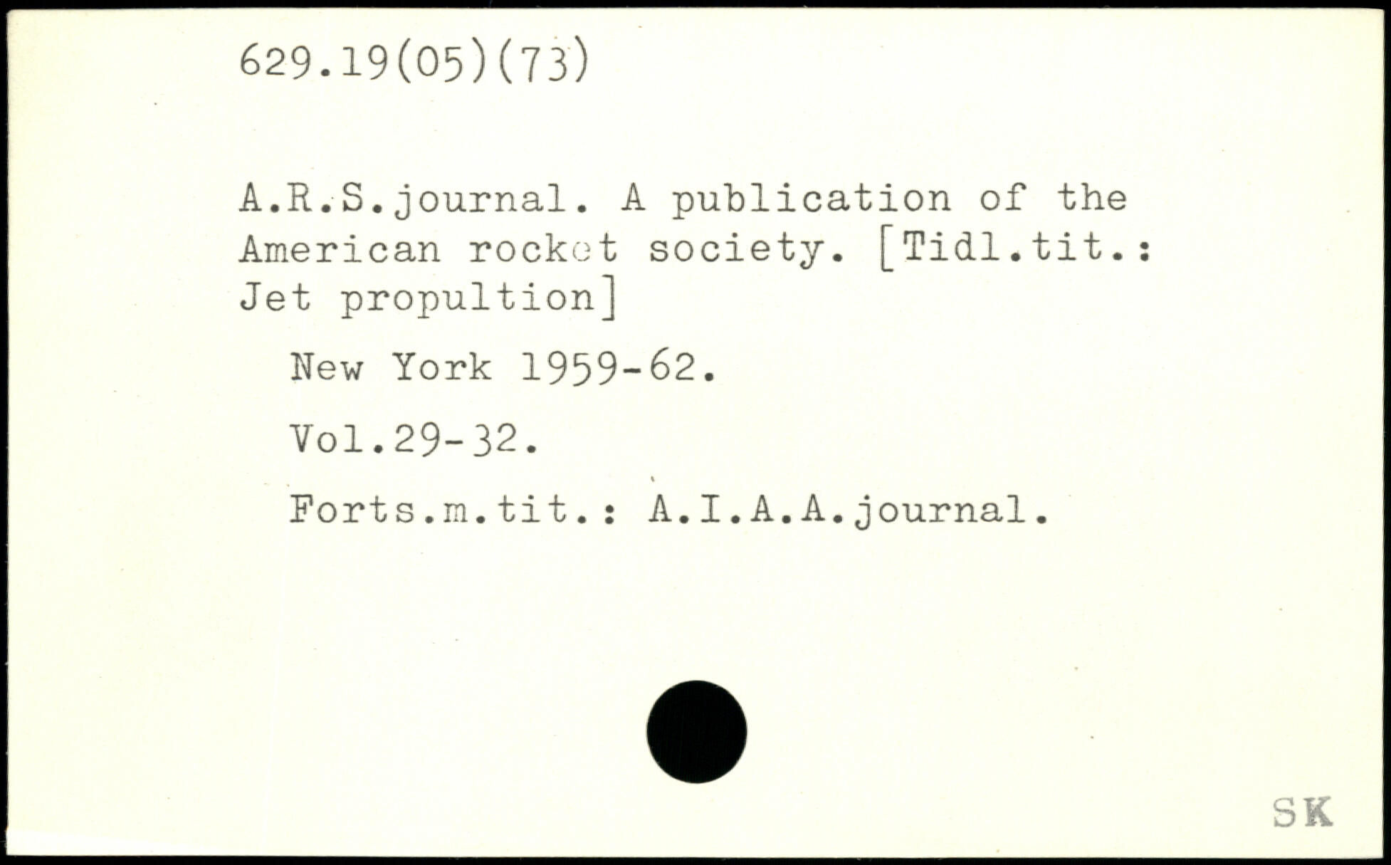 A.R.S.journal. A publication of the American rockot society. [Tidl.tit.; Jet propultion]