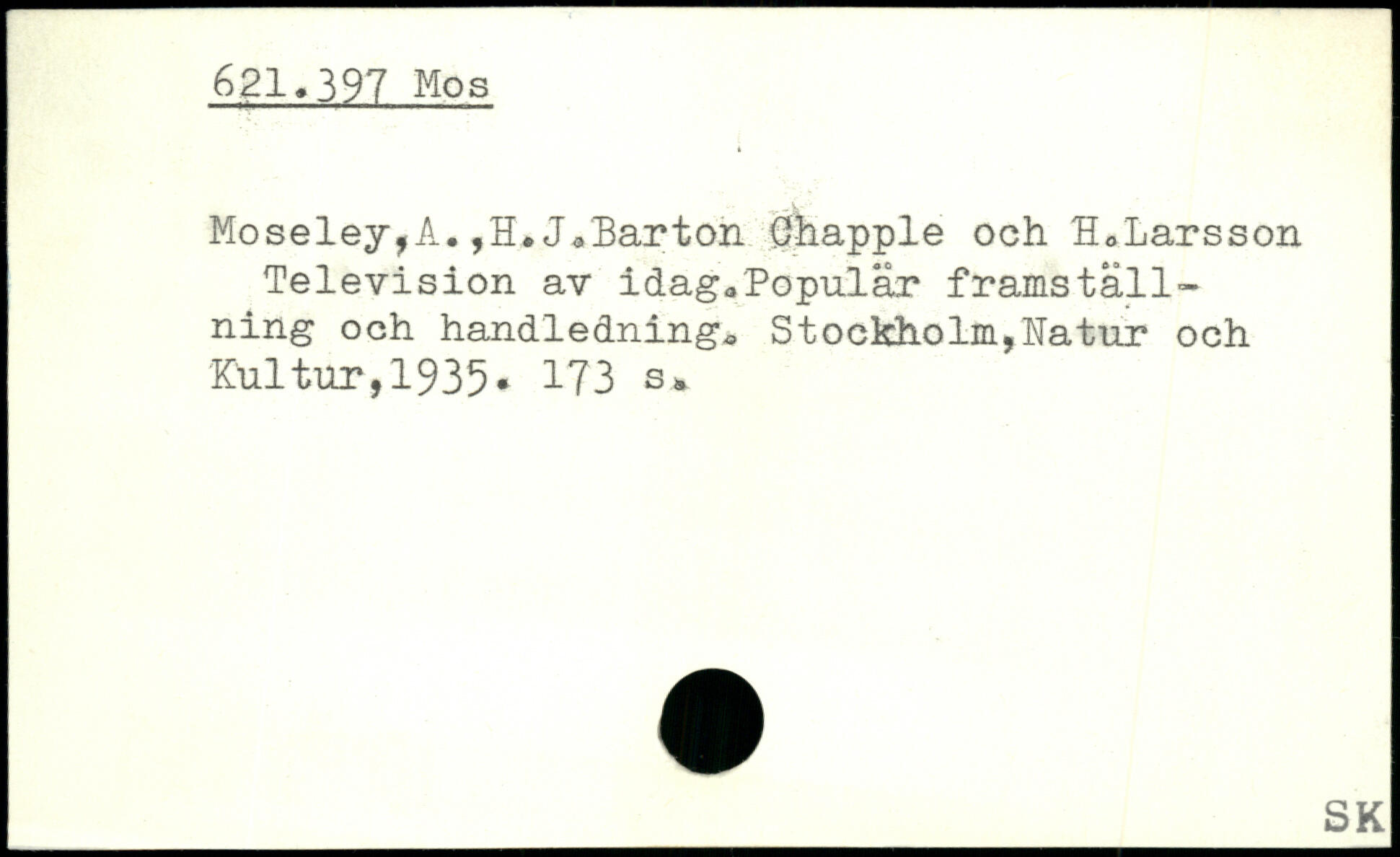 Moseley,A.,H.J.Barton öhapple och EoLarsson Television av idag.Populär framställning ooh handledning.