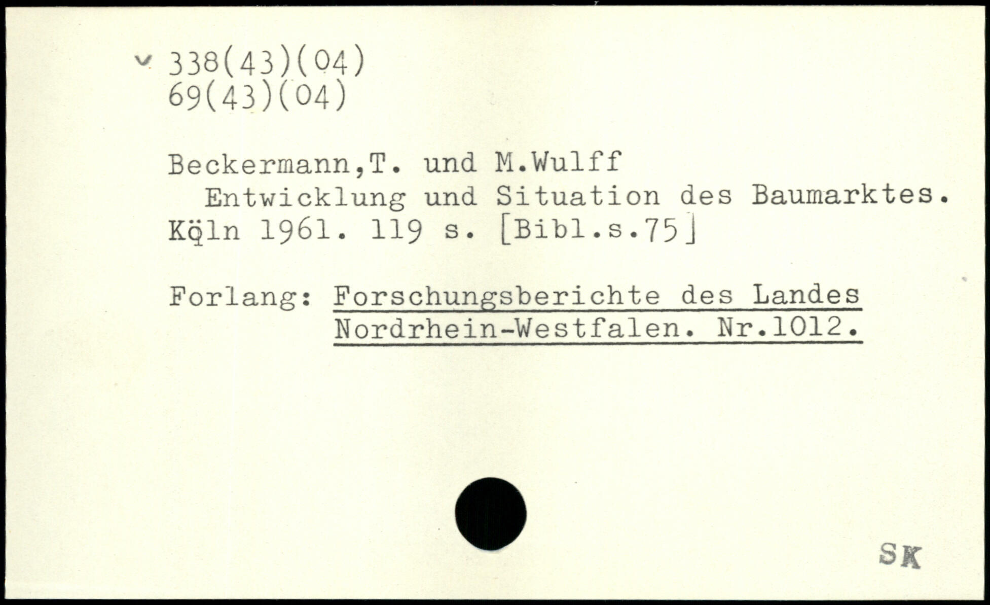 Entwicklung und Situation des Baumarktes. Kqln 1961.