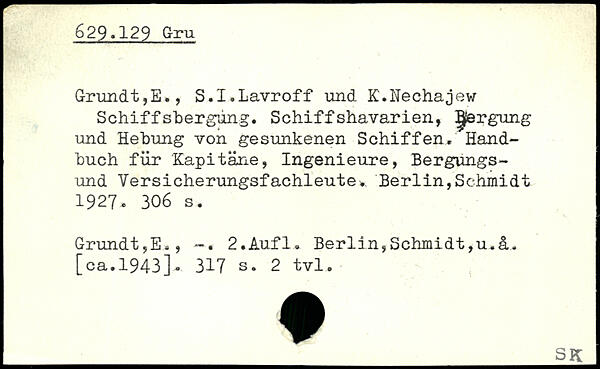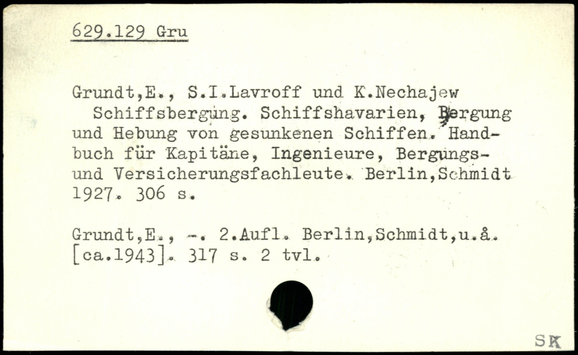 Schiffsbergiing. Schiffshavarien, Ijfcrgung und Hebung von gesunkenen Schiffen. Handbuch für Kapitäne, Ingenieure, Bergungsund VersicherungsfachleuteBerlin,Schmidt 1927.