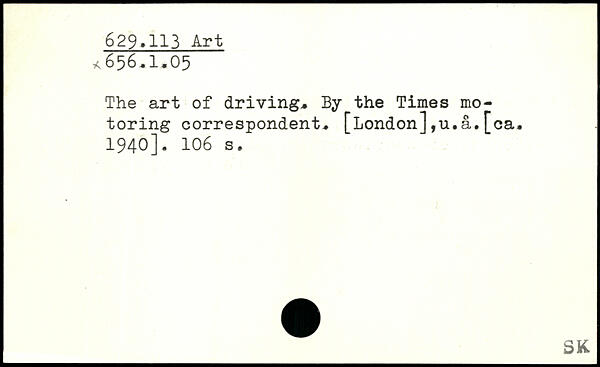The art of driving, By the Times motoring correspondent, [London],u.a.[ca. 1940].