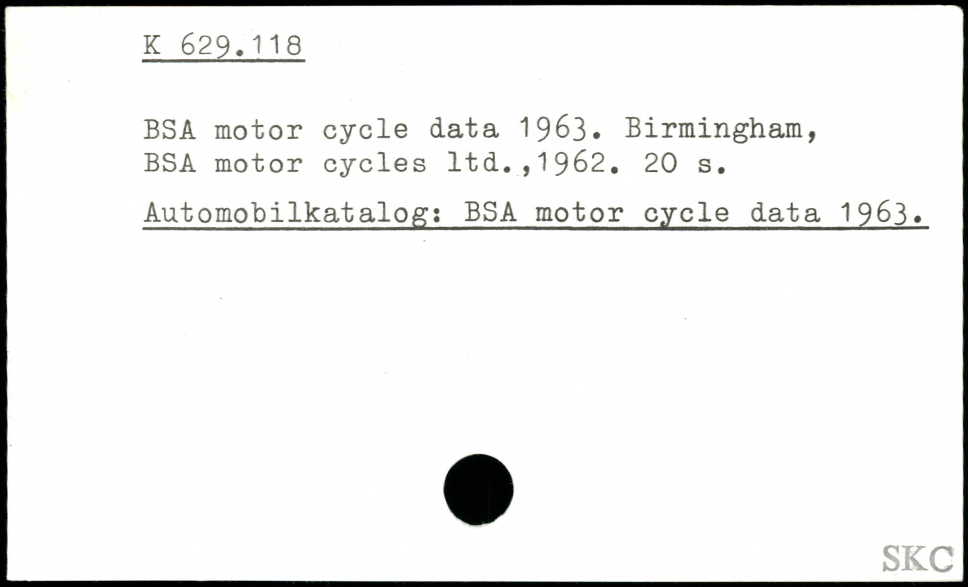 BSA motor cycle data 1963.