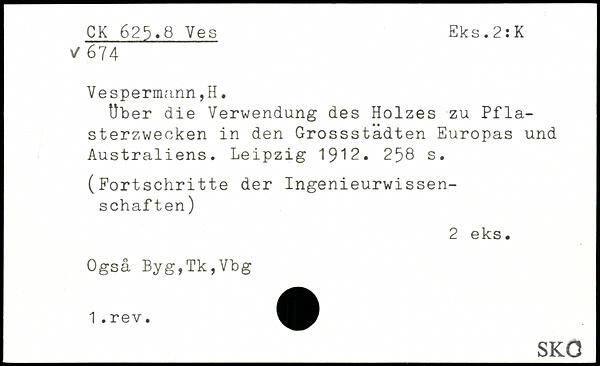 Über die Verwendung des Holzes zu Pflasterzwecken in den Grossstadten Europas und Australiens. Leipzig 1J12.