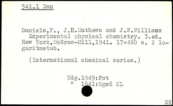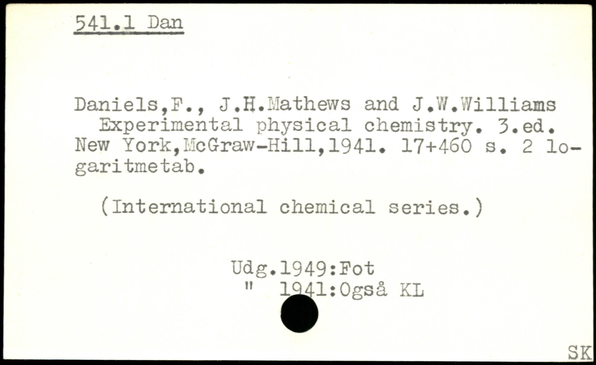 Daniels,?., J.H.Mathews and J.W.W1111ams Experimental physical chemistry.
