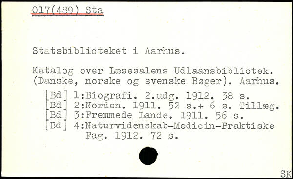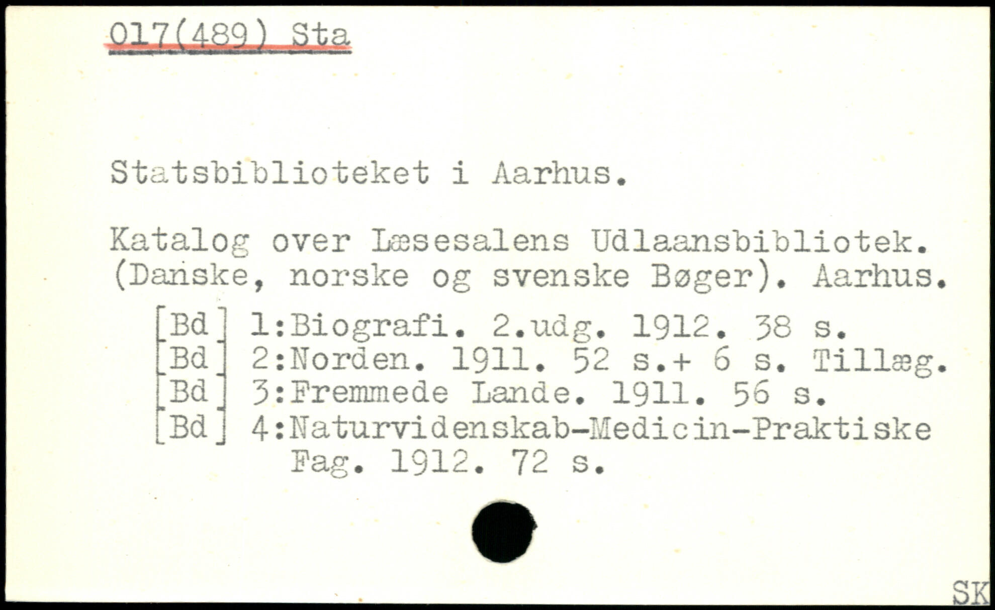 Katalog over Læsesalens Udlaansbibliotek. (Danske, norske og svenske Bøger). Aarhus. [Bd] 1:Biografi.