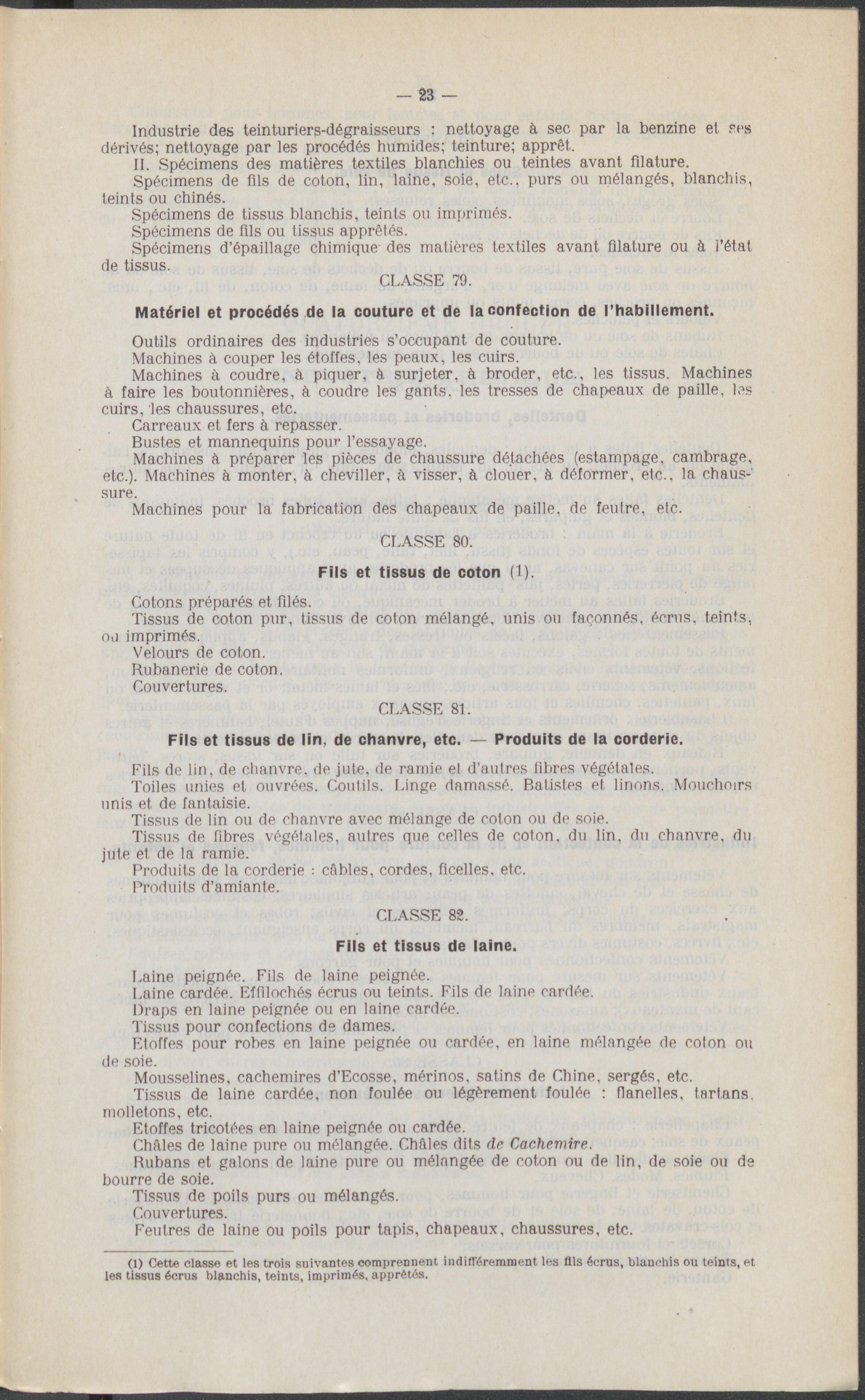 (1) Cette classe et les trois suivantes compreniient indifféremment les flis écrus, blanchis ou teints, et