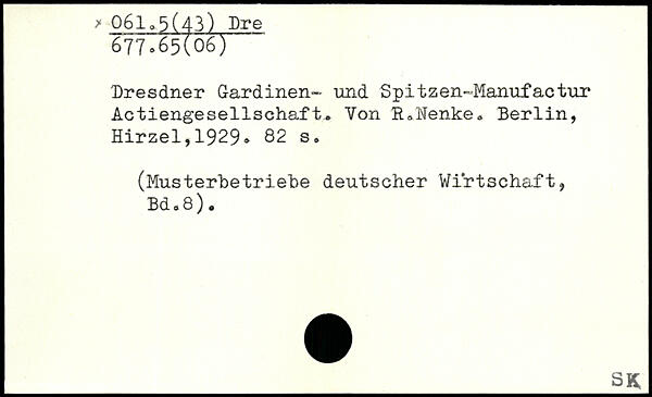 Dresdner Gardinen, und Spitzen-Manufactur ActiengeSeilschaft.. Von R.Nenke.