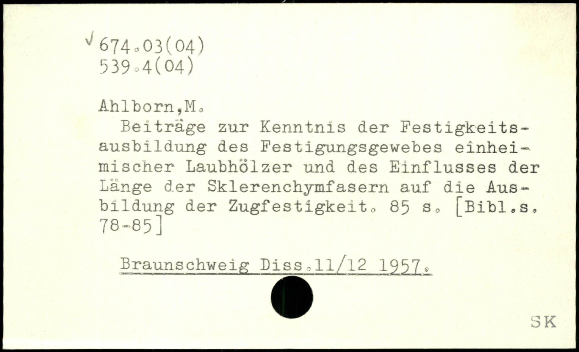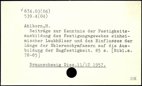 Beiträge zur Kenntnis der Festigkeitsausbildung des Festigungsgewebes einhei-mischer Laubhölzer und des Einflusses der Lange der Sklerenchymfasern auf die Ausbildung der Zugfestigkeito