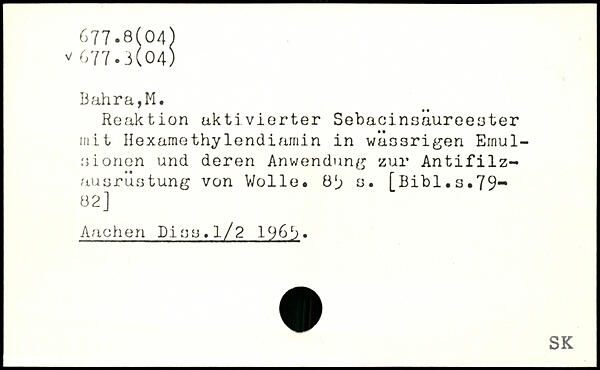 Reaktion aktivierter Sebaeinsäuroeater mit Hexamethylendiarnin in wässrigen Einul-sionon und deren Anwendung zur Antifilz-ausr’ustung von Wolle, ö'j s.