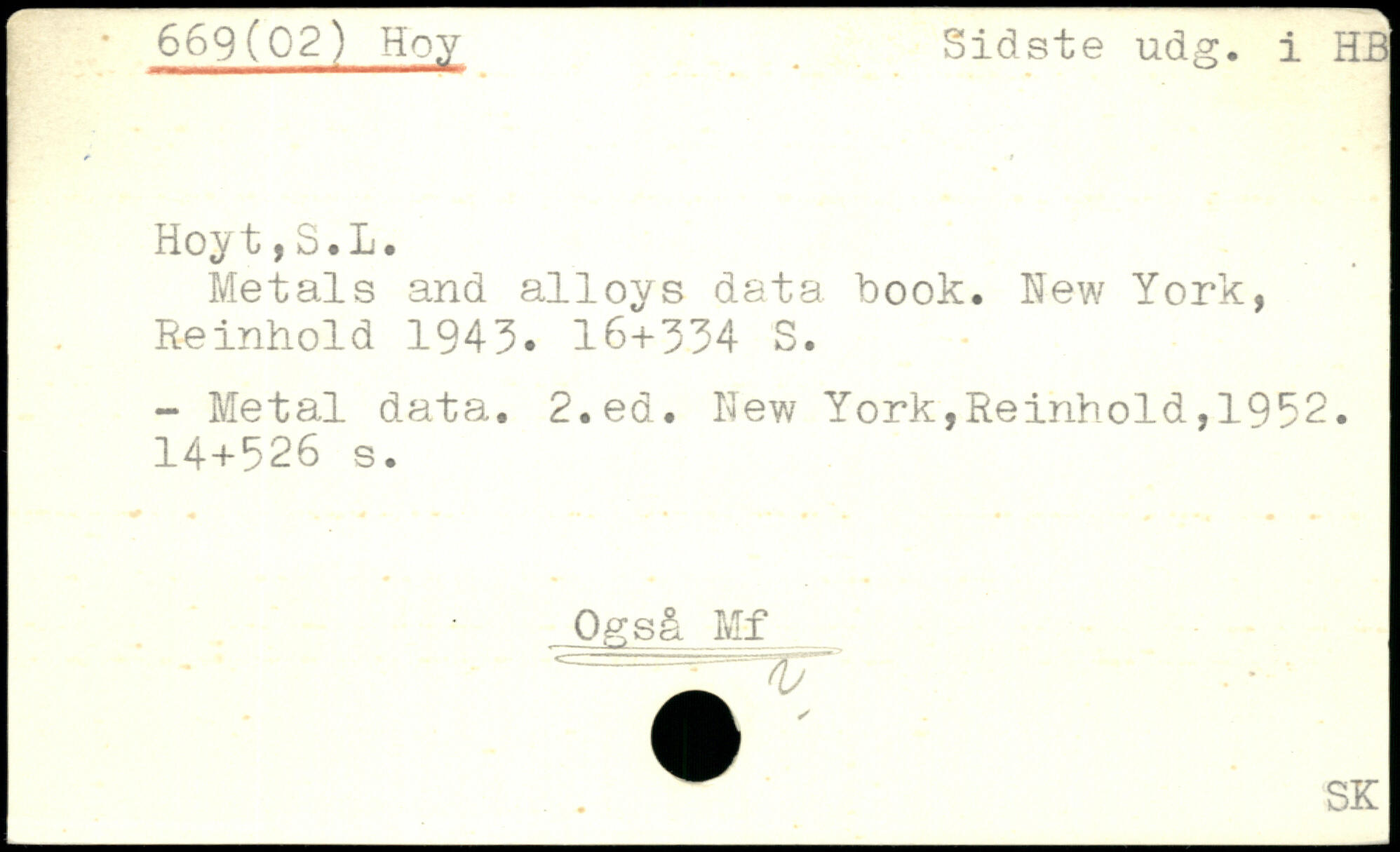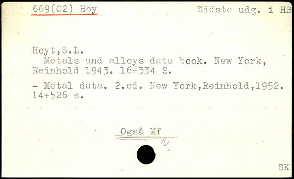 Metals and alloys data book. Hew York, Reinhold 1943.