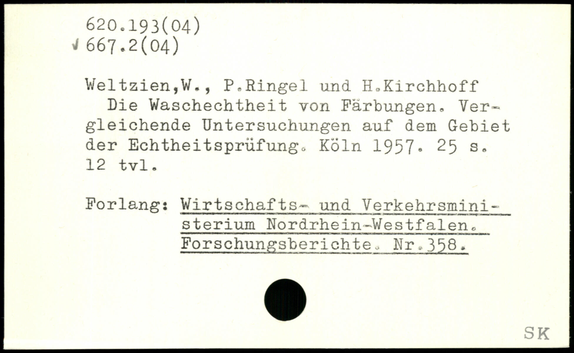 Weltzien,W., P.Ringel und H.Kirchhoff Die Waschechtheit von Färbungen, Vergleichende Untersuchungen auf dem Gebiet der Echtheitsprüfungo