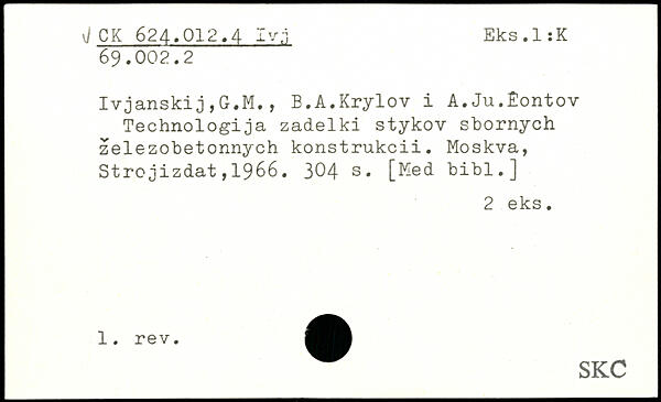 Ivjanskij,G.M., E.A.Krylov i A.Ju.Eontov Technologija zadelki stykov sbornych zelezobetonnych konstrukcii.