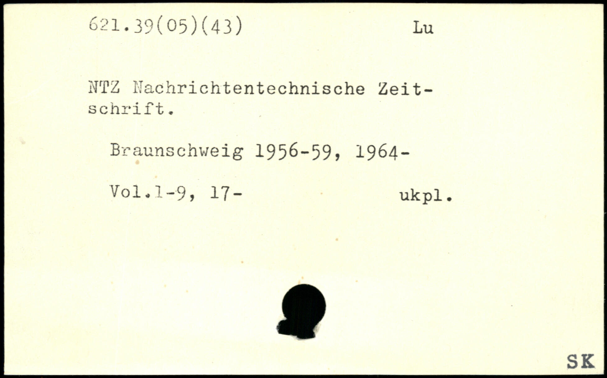 NTZ Nachrichtentechnische Zeitschrift. Braunschweig 1956-59, 1964-V0I.I-9, 17- ukpl.