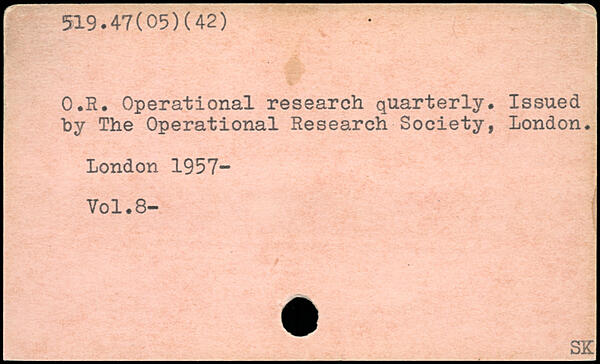 O.R. Operational research quarterly. Issued by The Operational Research Society, London.
