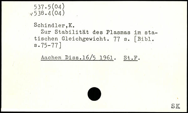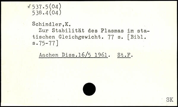 Zur Stabilität des Plasmas im statischen Gleichgewicht.