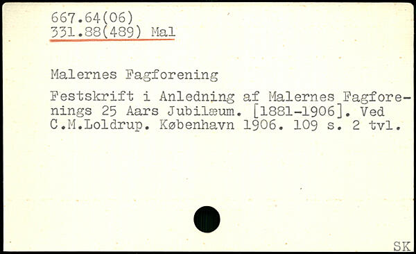 Malernes Fagforening Festskrift i Anledning af Malernes Fagforenings 25 Aars Jubilæum