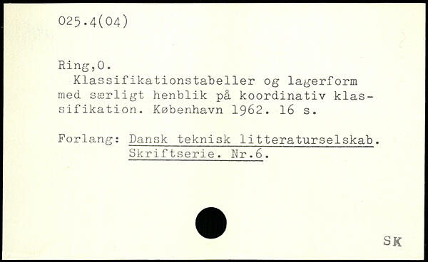 Klassifikationstabeller og lagerform med særligt henblik på koordinativ klassifikation. København 1$62.