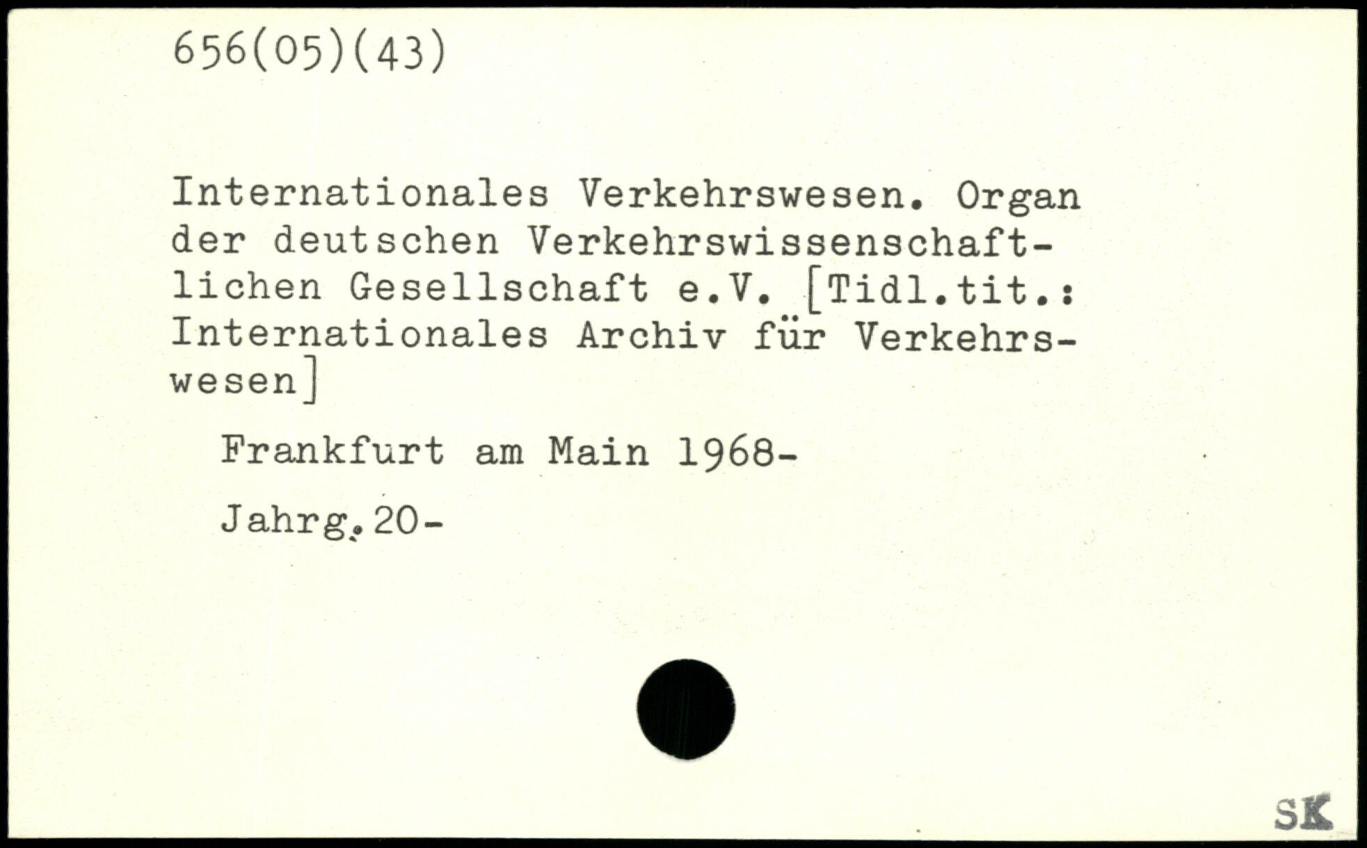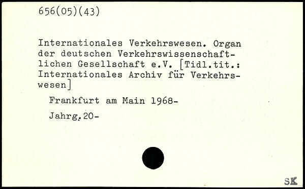 Internationales Verkehrswesen. Organ der deutschen Verkehrswissenschaftlichen Gesellschaft e.V. [Tidl.tit.: Internationales Archiv für Verkehrswesen]