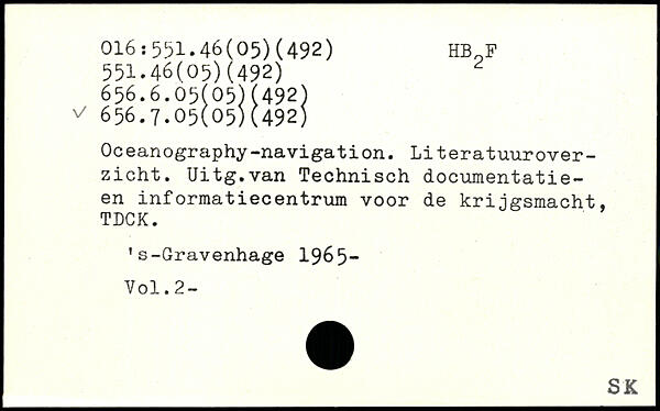 Oceanography-navigation. Literatuurover-zicht. Uitg.van Technisch documentatie-en inforraatiecentrura voor de krijgsmacht, TDCK. 's-Gravenhage 1965-