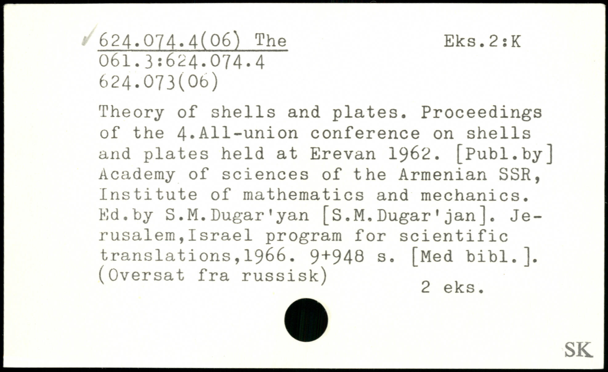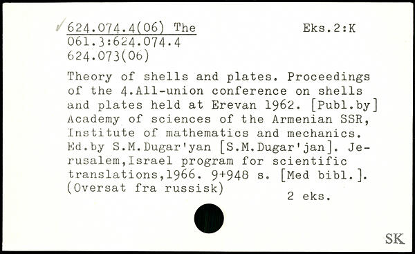 Theory of shells and plates. Proceedings of the 4.All-union conference on shells and plates held at Erevan 1962.