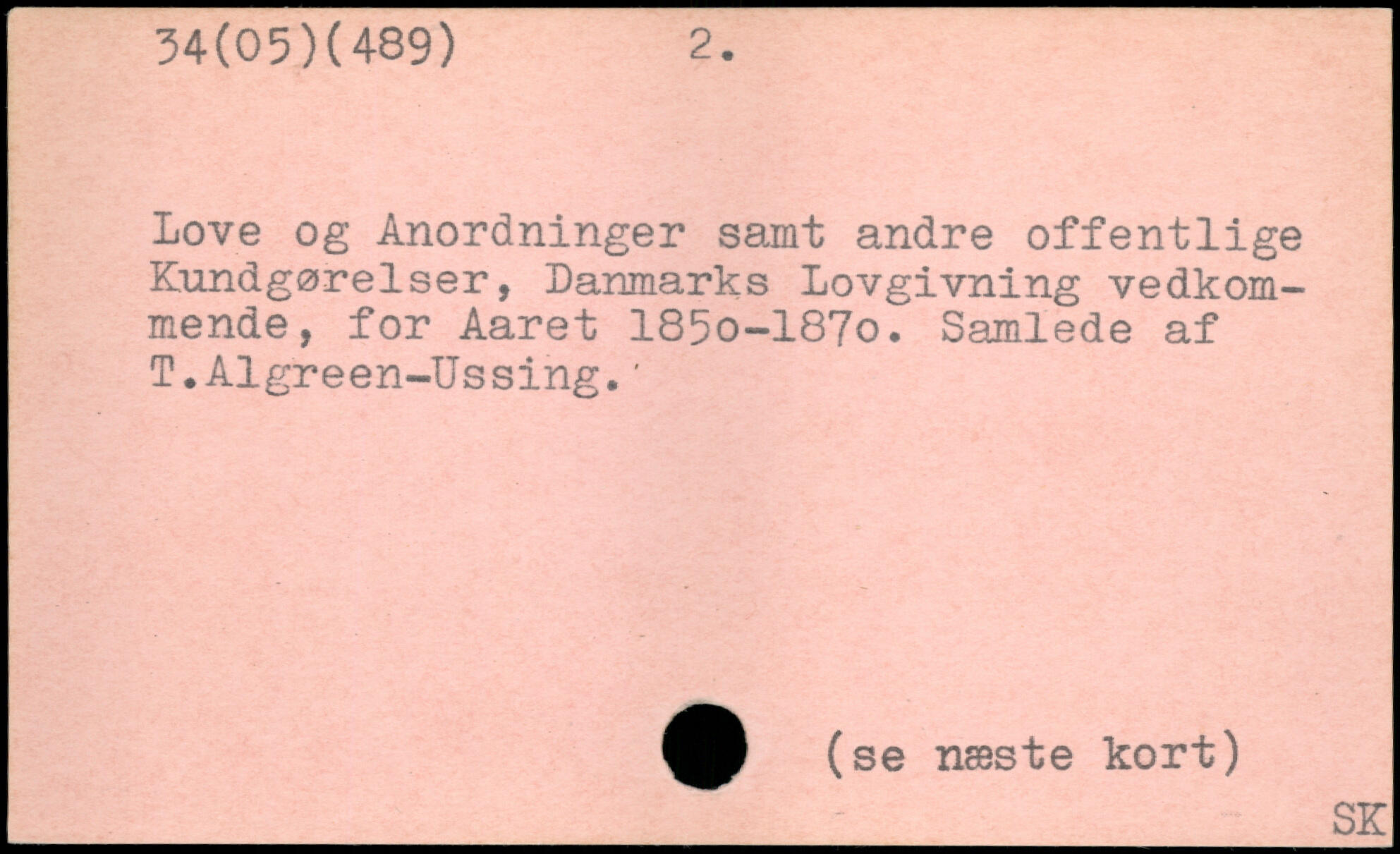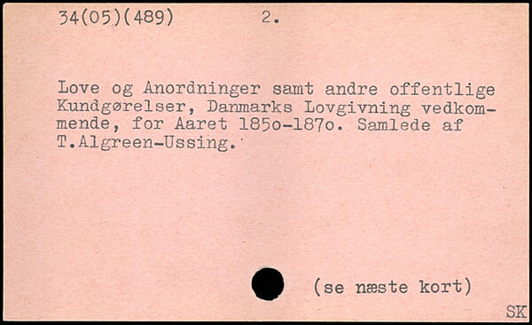 Love og Anordninger samt andre offentlige Kundgørelser, Danmarks Lovgivning vedkommende, for Aaret 185o-187o. Samlede af T.Algreen-Ussing.'
