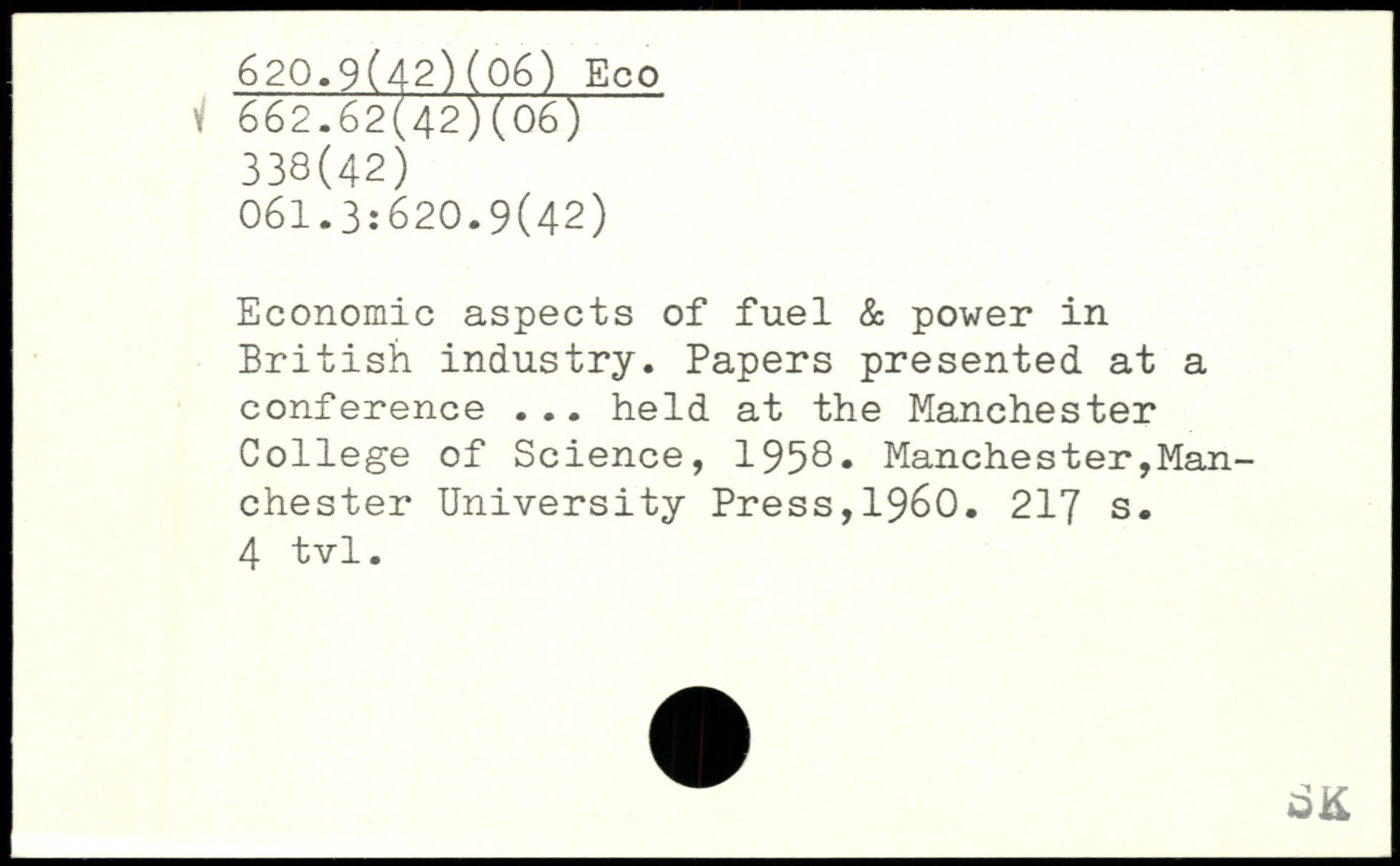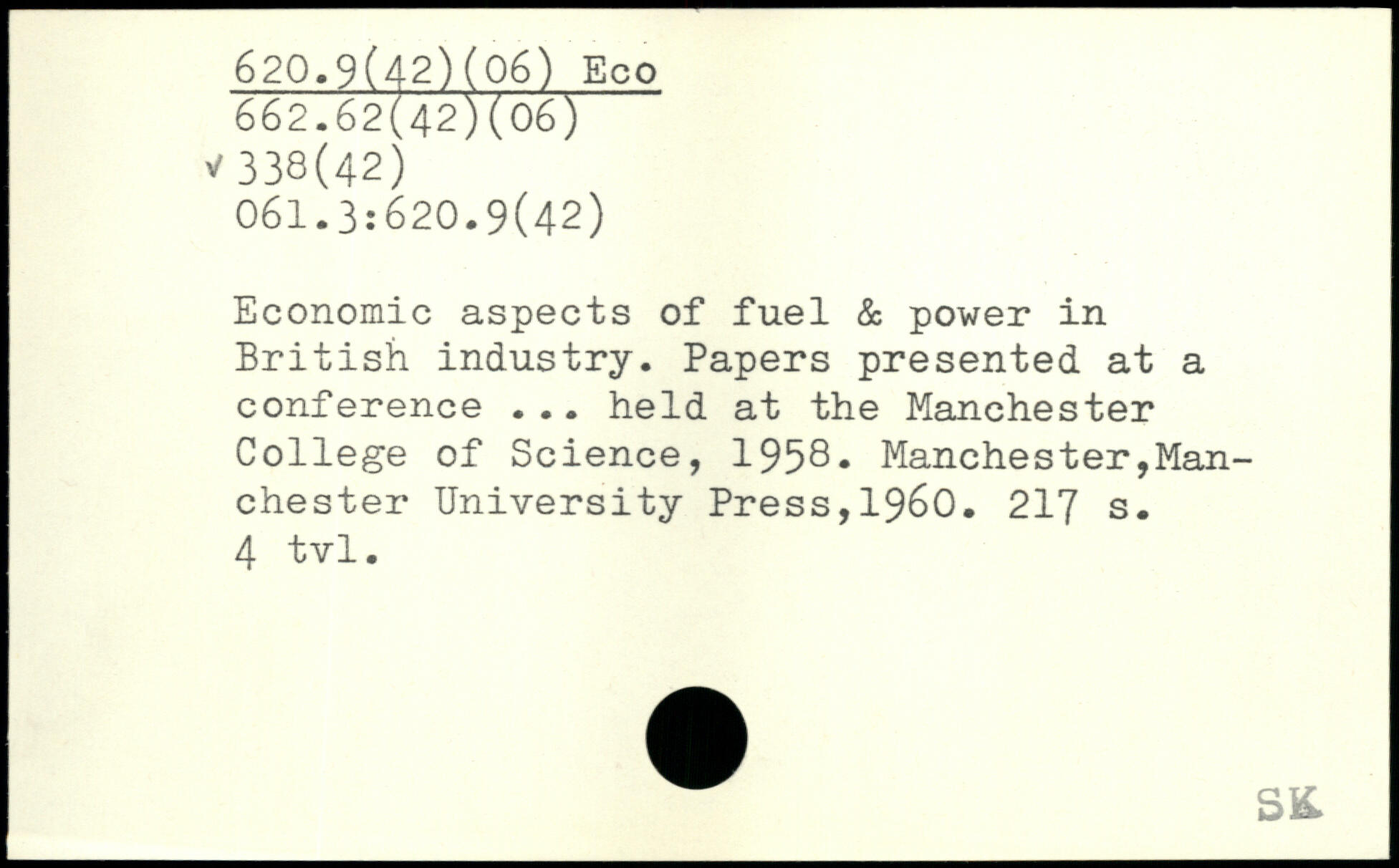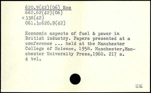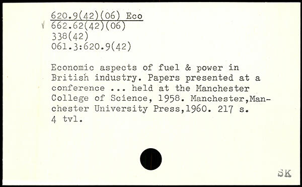 Economic aspects of fuel & power in British industry. Papers presented at a conference ... held at the Manchester College of Science, 1958.