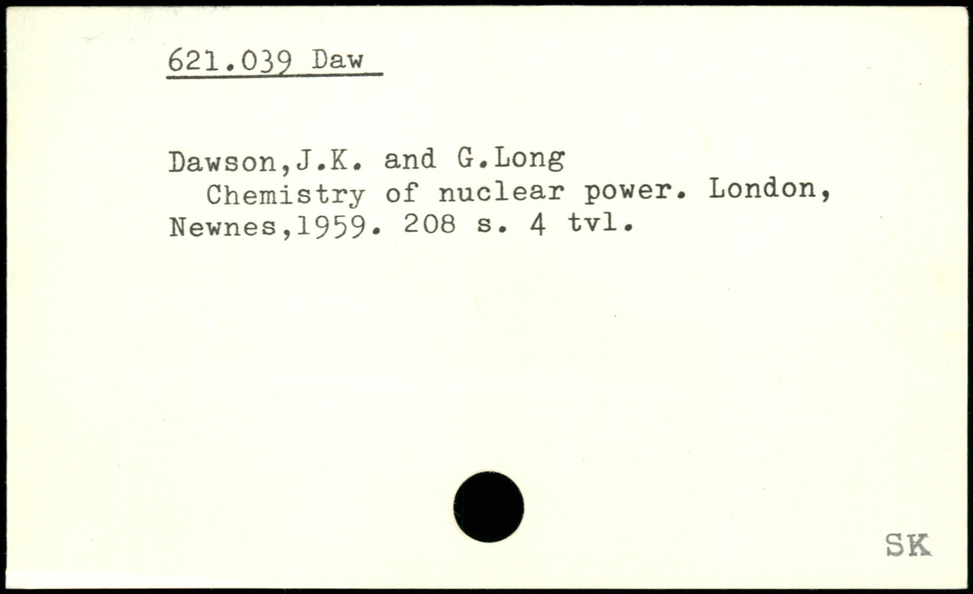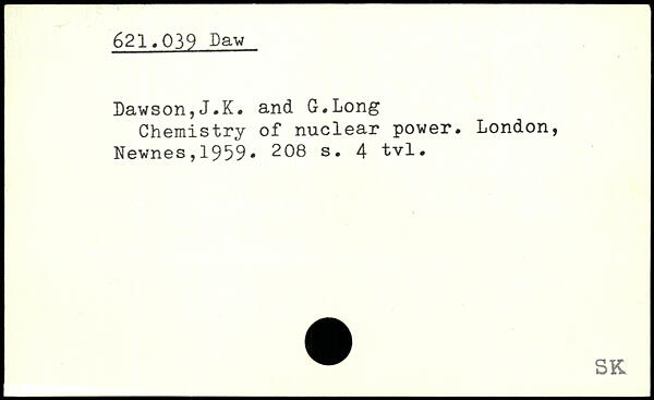 Dawson,J.K, and G.Long Chemistry of nuclear power.