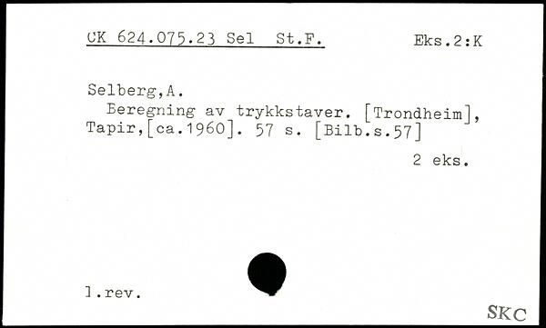 Beregning av trykkstaver. [Trondheim], Tapir,[ca.1960].