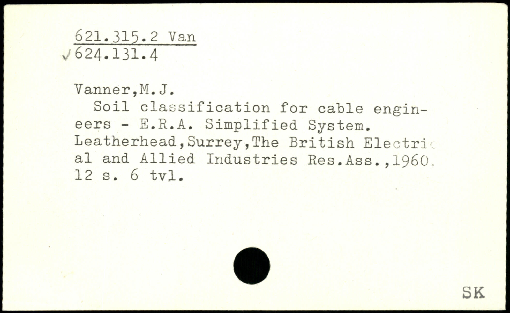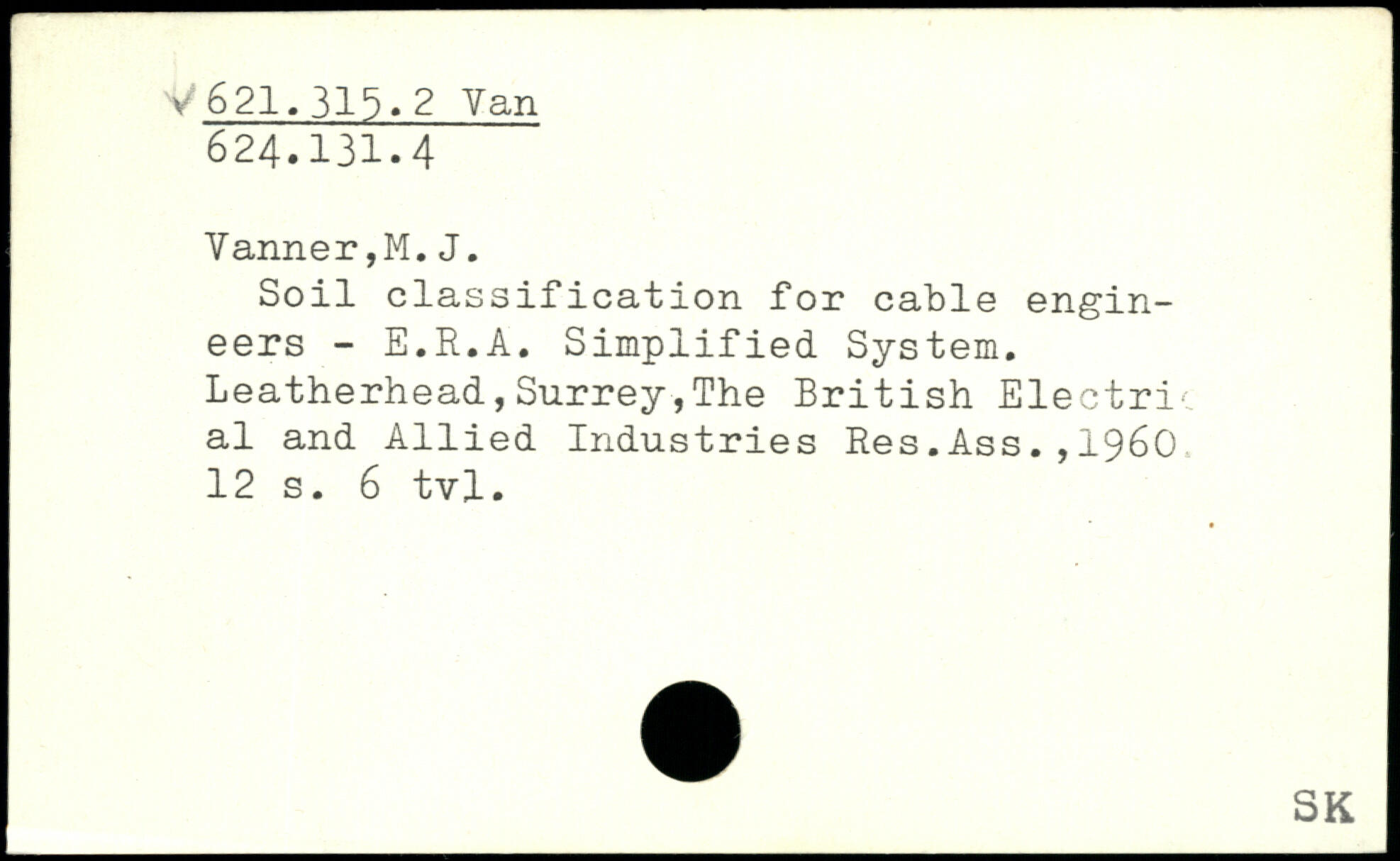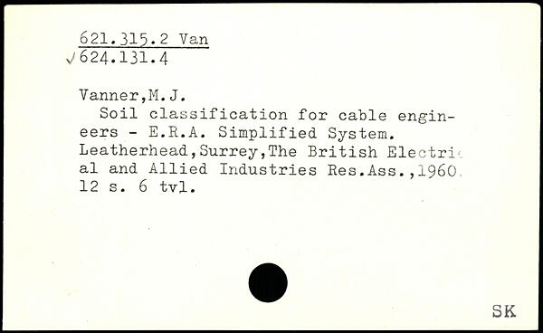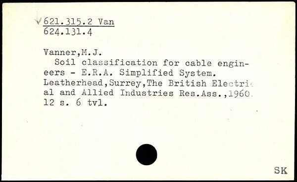 Soil classification for cable engineers - E.R.A. Simplified System. Leatherhead,Surrey,The British Electric al and Allied Industries Res.Ass.,1960