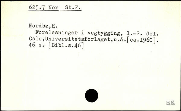 Forelesninger i vegbygging, 1.-2. del. Oslo,Universitetsforlaget,u.å.[ca.1960].