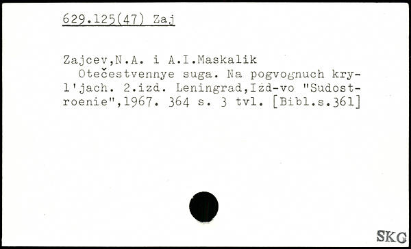 Otecestvennye suga. Na pogvognuch kry-l'jach. 2.izd. Leningrad,Izd-vo "Sudost-roenie",1967. 3^