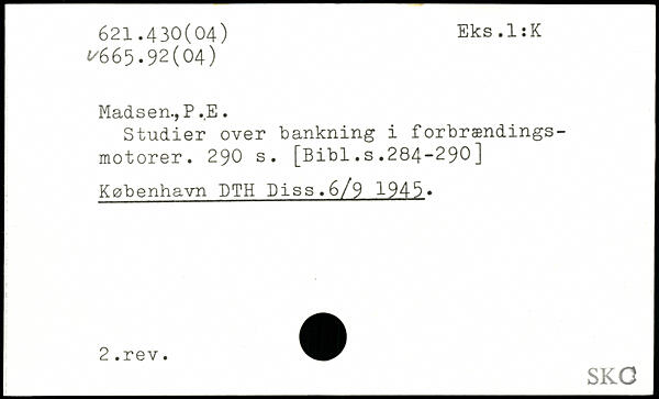 Madsen., P .E. Studier over bankning i forbrændingsmotorer.