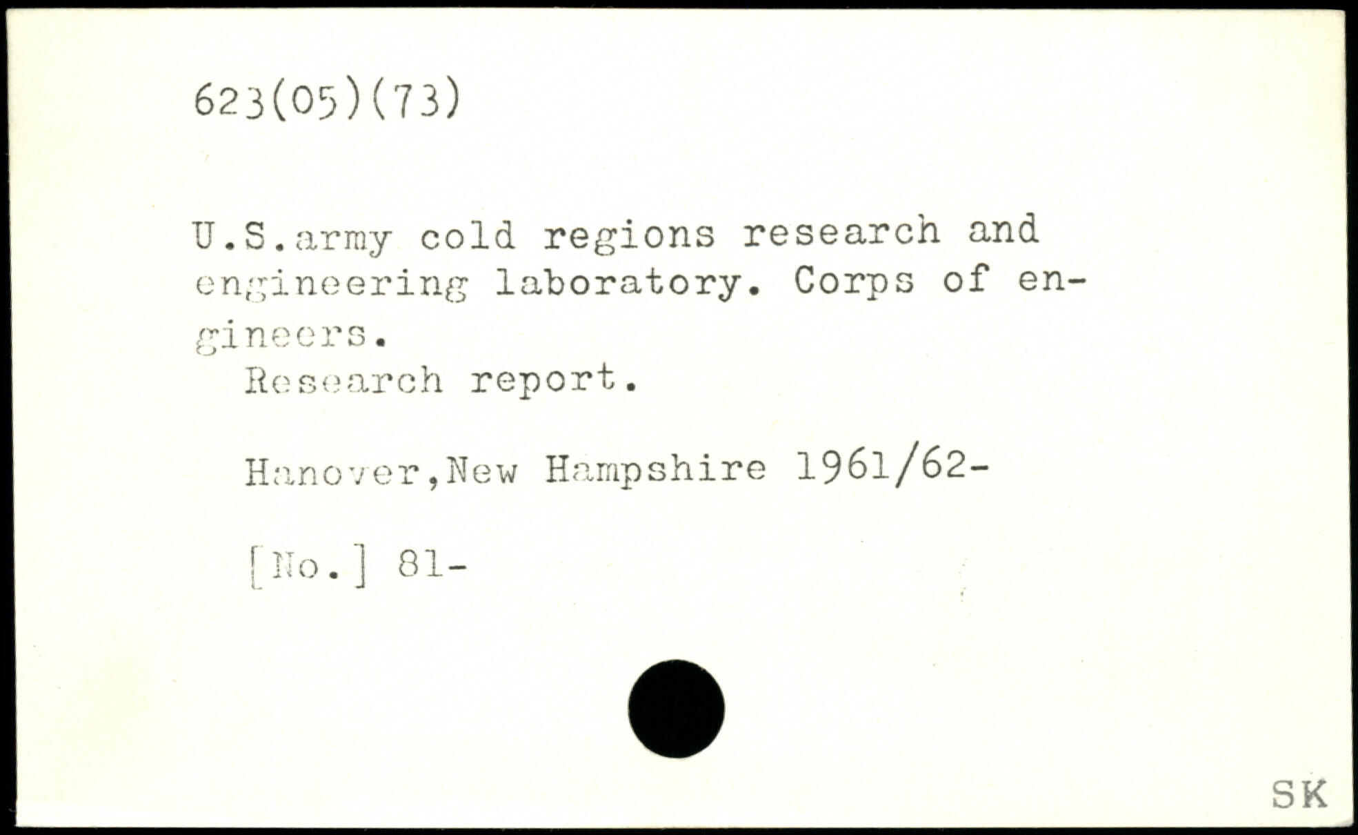 U. S.array cold regions research and engineering laboratory. Corps of engineers. Research report. i Hanover,New Hampshire 1961/62-[No.] 81-